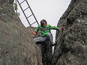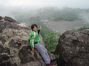 「とどろき岩」の頂上に到着。ここは余裕をアピール!
