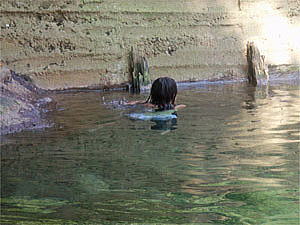 やっと川の温泉に入ると、わざわざ一番深い所に入ろうとしていた。しばらくは岸に摑まっていたのでちょっとだけ目を離し、ふと振り返るとひかりがぶくぶくぶくぶく・・・と溺れかけていた。