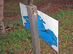 こうしてまた焚き火用の小枝を拾い集めていると、テントを張った直ぐ近くの立て看板に蝉が羽化し始めているのを見つけた。私は蝉の羽化は夜中に行われるものと思っていたが、日が昇ってからも羽化するのをこの時初めて知った。それから拾って来た小枝の中に、羽化したばかりの蝉がくっついていたのも見つける。(右上) 気が付いたから良かったものの、もう少しで羽化したばかりの蝉を火やぶりの刑にしてしまうところであった。