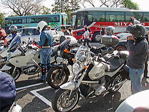 蓮田SAに到着すると既に10台程のBMWが到着していた。この日蓮田SAには他にも多くのツーリングクラブが集まっており、蓮田SA内は車もバイクも大混雑状態であった。
