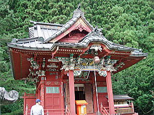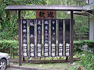 食事が終わり、少しの間ゆっくり休憩する時間となった。この「白根魚苑」内には立派な神社が有り、その建物の造りをじっくり見学し、最後に残りのツーリングの無事を祈った。そして出発前にFLATメンバーの集合写真の撮影を行った。